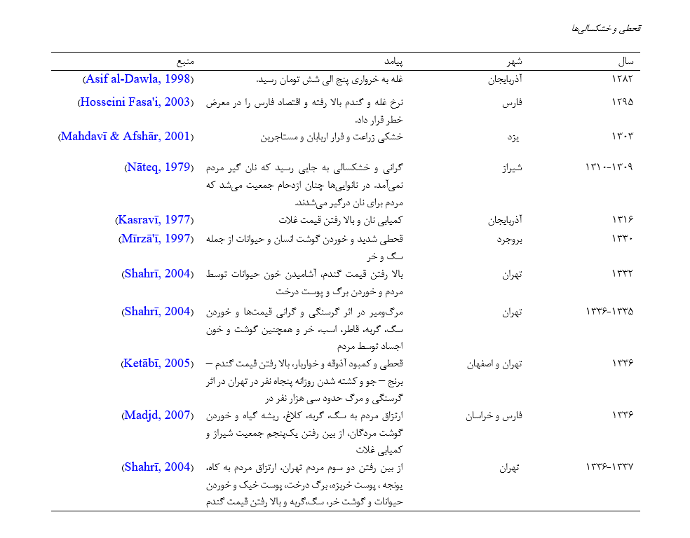 Ketābī, A. (2005). Famines of Iran. Cultural Research Bureau.