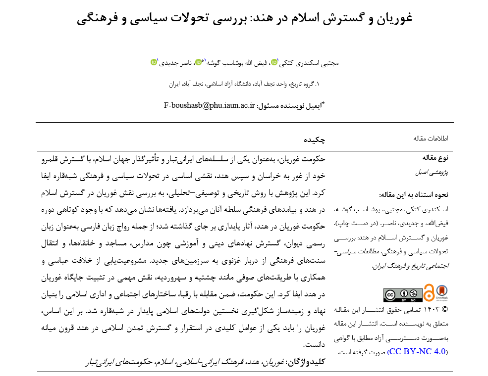 Rezaei, M. (2015a). The Ghurids and Cultural Transformations in Islamic India. Research Institute for Humanities and Cultural Studies.