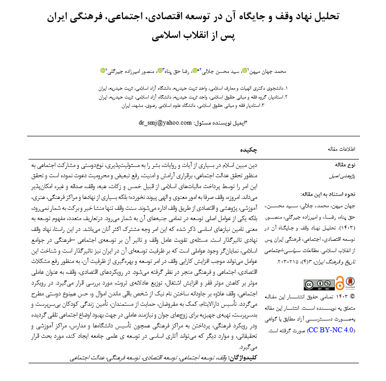 تحلیل نهاد وقف و جایگاه آن در توسعه اقتصادی، اجتماعی، فرهنگی ایران پس از انقلاب اسلامی