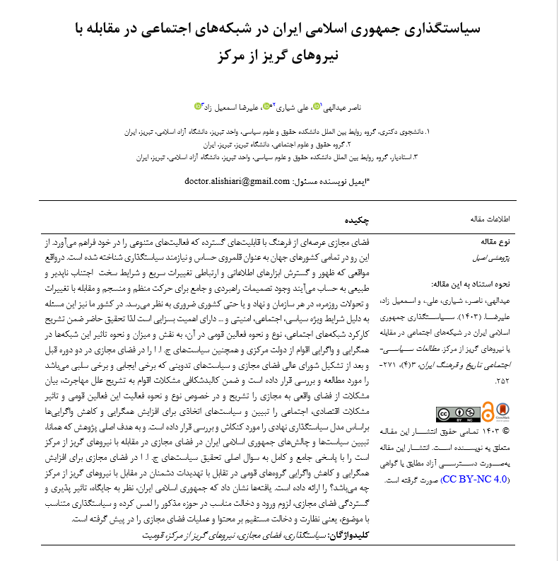 سیاستگذاری جمهوری اسلامی ایران در شبکههای اجتماعی در مقابله با نیروهای گریز از مرکز